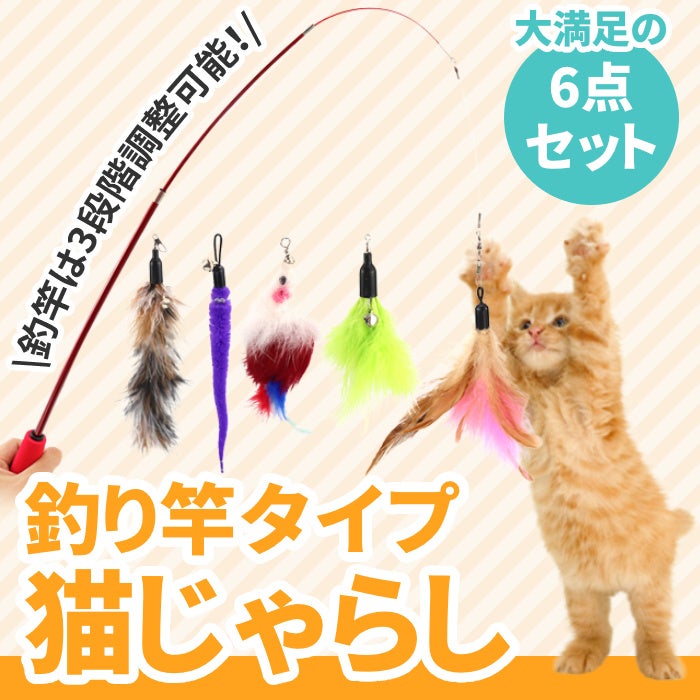 大満足の6点セット!「猫 おもちゃ ねこじゃらし 釣り竿」が販売開始します。