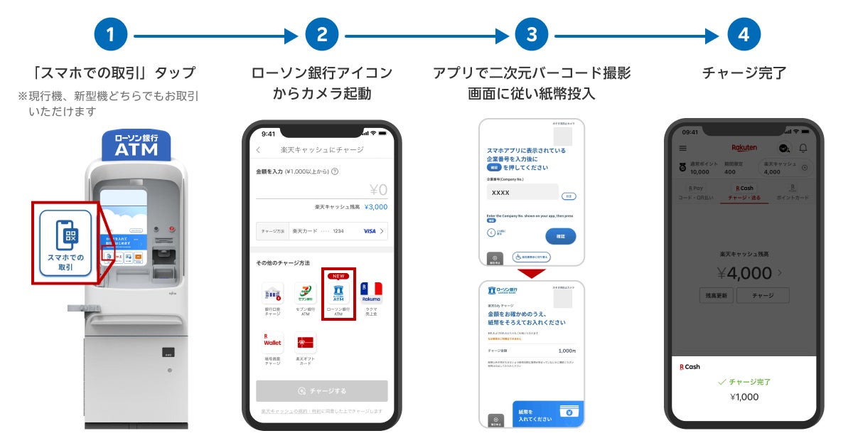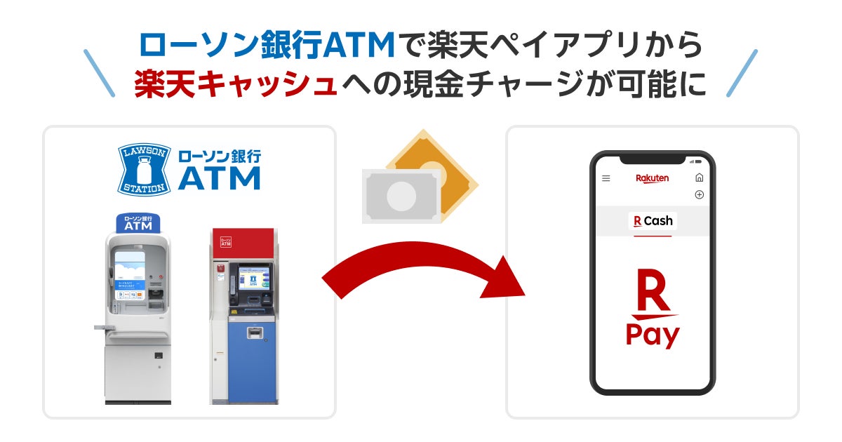 株式会社ローソン銀行(以下「ローソン銀行」)、楽天ペイメント株式会社(以下「楽天ペイメント」)と楽天Edy株式会社(以下「楽天Edy」)は、2024年4月8日(月)より全国のローソン銀行ATMで、「楽天ペイ」アプリを通じてオンライン電子マネー「楽天キャッシュ」(注1)に現金チャージが可能になることをお知らせします。
