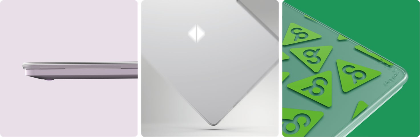 ▷着せ替えケース本体には再生素材を、デザインのプリントには『GREENGUARD Gold』認証のUV硬化インクを使用した、環境に配慮した商品構成。