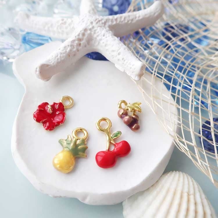 カラフルに色づけしたフルーツとハイビスカスの小さなチャームが登場。