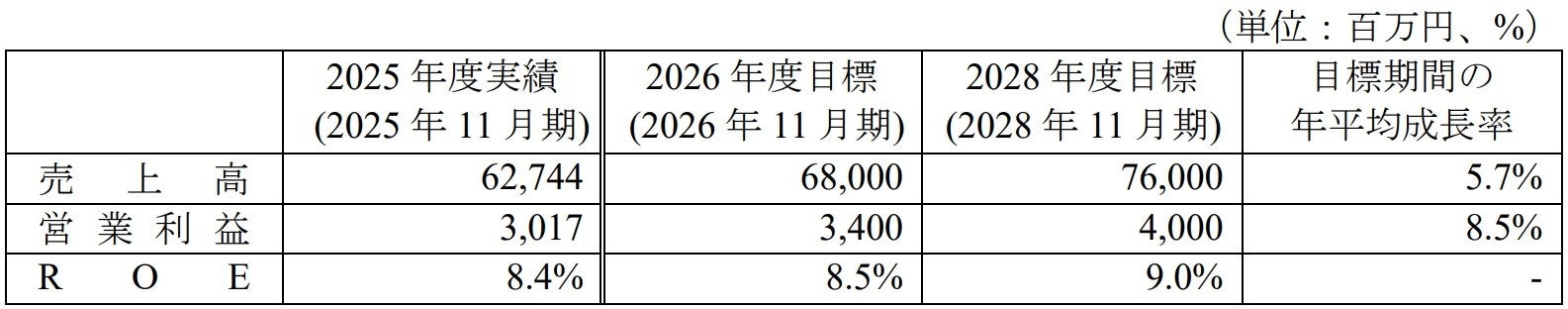 アステナホールディングス株式会社(本社:東京都中央区、代表取締役社長:瀬戸口 智、証券コード:8095)および当社グループ各社は、2021年1月13日付「新中長 期ビジョン策定に関するお知らせ」において中期経営計画を公表しておりますが、2026年11月期からの3ヵ年の中期経営計画の連結数値計画を改めて策定いたしましたので、お知らせいたします。