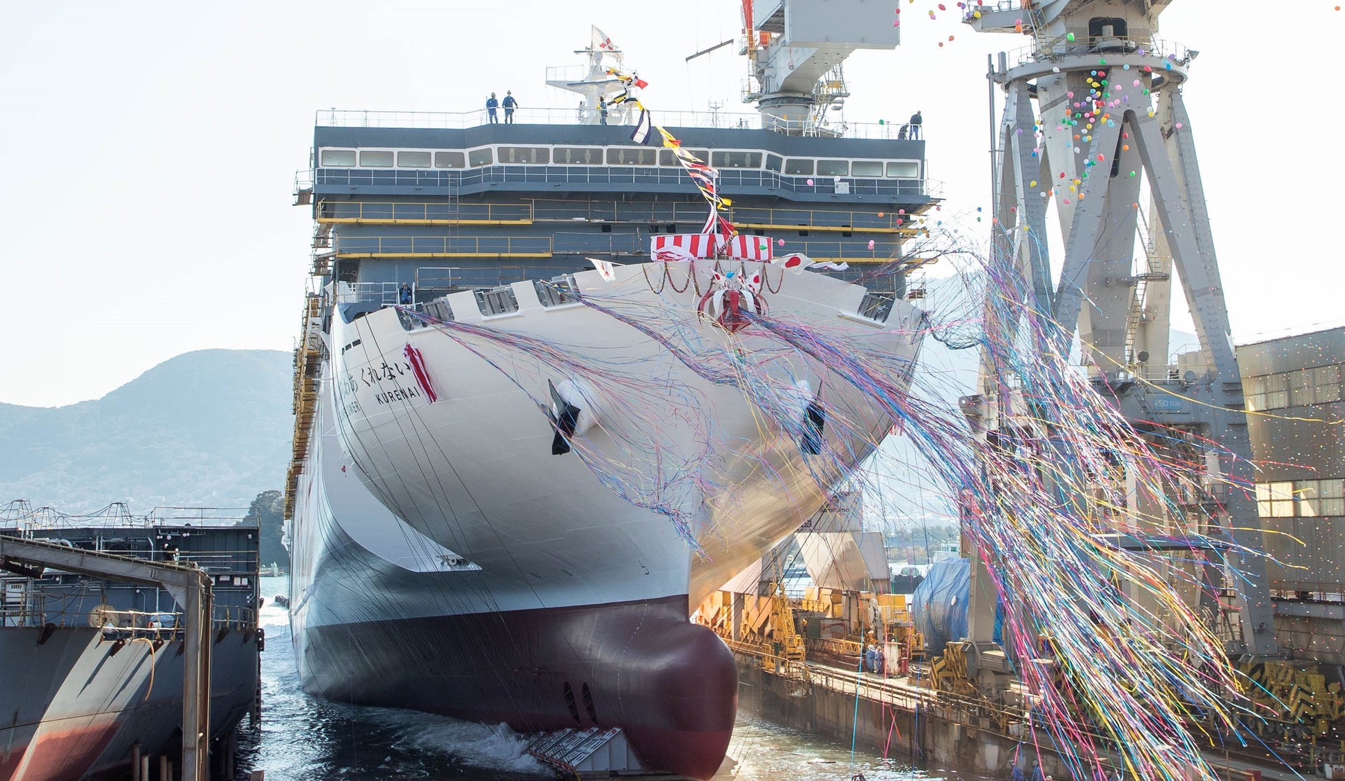 フェリー「さんふらわあ くれない」進水式の映像展示