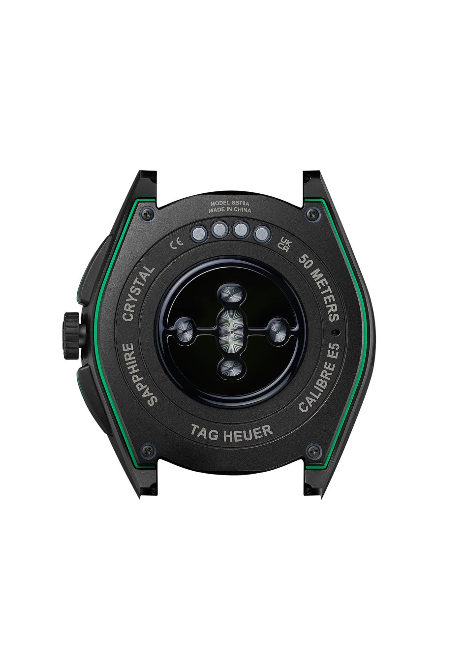 ゴルフにおいて、Calibre E5 Golf EditionはTAG Heuer Connectedの中核としての地位を保っています。1から18までのホール番号を刻印した特別仕様のベゼルは、ゴルフというスポーツの伝統を反映しつつ、ゴルフのためにデザインされたものであることを際立たせています。ラバーと別素材を組み合わせたバイマテリアルストラップは、ゴルフボールのディンプルに着想を得た質感のある表面を持ち、優れたグリップ力を提供するだけでなく、ゴルフとのつながりを視覚的にしっかりと実感できます。