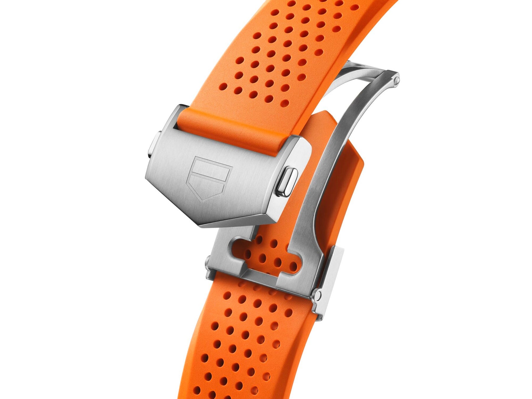 ケース素材は、デザイン性と耐久性の両立を追求し、厳選されました。45 mmモデルには、セラミック製ベゼルを備えたステンレススティール製と、よりテクニカルな美しさを追求した、サンドブラスト仕上げにブラックDLCコーティングを施したチタン製が用意されています。一方40 mmのモデルは、ポリッシュ仕上げのステンレススティール製。ドーム型サファイアクリスタルを組み合わせ、クリスタル裏面にプリントされたグレーとシルバーのインデックスが、視認性と上品な印象を演出しています。さらに40 mmのシリーズには、より温かみのあるローズゴールドのPVDコーティングを施したバリエーションも登場。ベージュのラバーストラップとピンバックルが、TAG Heuer Connectedラインの控えめなラグジュアリー感に個性的なタッチを加えています。