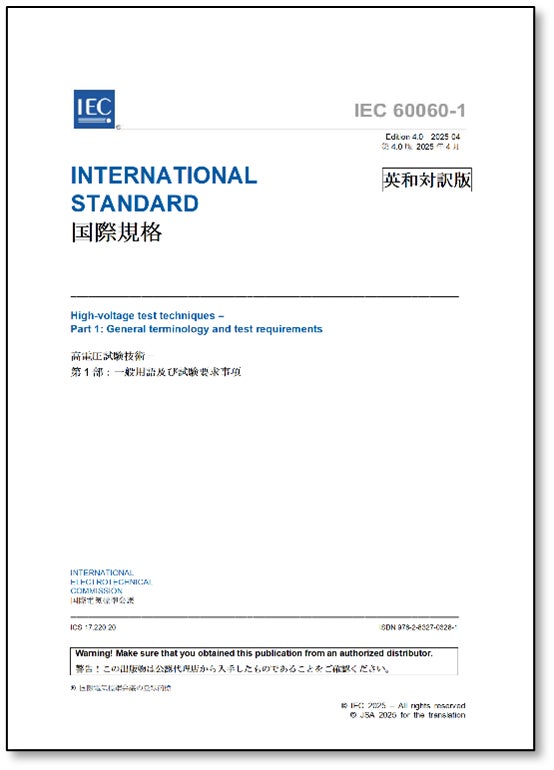 一般財団法人日本規格協会(本部:東京都港区、理事長:朝日弘)は、2025年10月15日(水)に高電圧試験技術に関する国際規格の邦訳版を発行いたしました。
