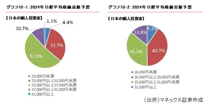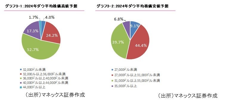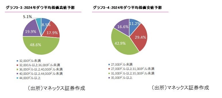 2024年の米国マーケット予想、日本と米国は36,000ドル以上40,000ドル未満が最も高い割合に