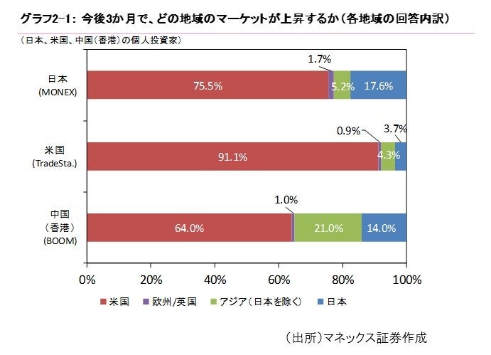 三地域の個人投資家すべてで米国への期待が最も高い割合に