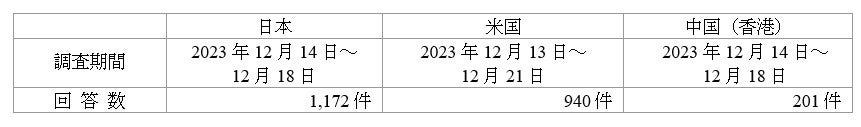 日本、米国および中国(香港)における調査の実施概要は次のとおりです。