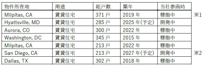 本共同事業では、TLUSのソーシング力に加え、90億ドル相当の不動産デット投資残高と運用体制を有するKennedy Wilsonのデット投資のソーシング力も活用し、リファイナンスや新規ローン調達時に顕在化する優良な優先出資等の投資機会の獲得を目指します。全米主要都市の賃貸住宅および物流施設の稼働物件または開発案件を投資対象とし、当初総額200百万ドル超の共同投資を予定しております。