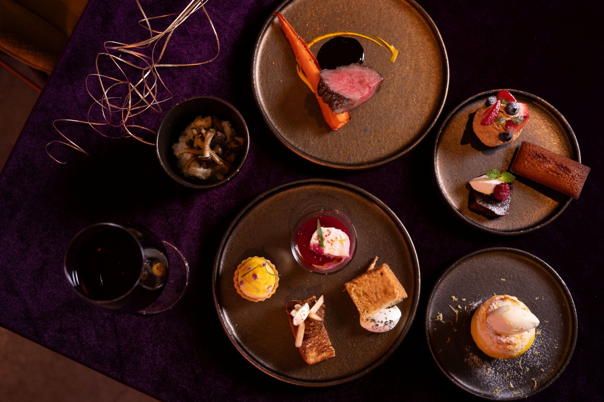 食の体験には、クリスマス気分を一層高める、フレンチ歴20年のシェフによるこだわりのイベント限定メニューをご用意。お食事とともに味わうワインは、大阪・西区に店舗を構える名門ワイン専門店「タカムラワイン&コーヒーロースターズ」が厳選。赤・白・スパークリングに加え、さらに上質な限定ワインも取り揃えています。