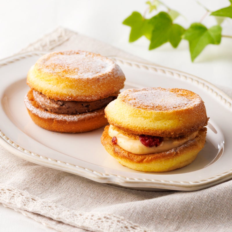 クリームチーズを練り込んだしっとりとした生地に、素材を活かした2種類のクリームをそれぞれサンド。【チェダー※&クランベリー】と【チョコレート】、2つの味を堪能できる食べ比べセットです。