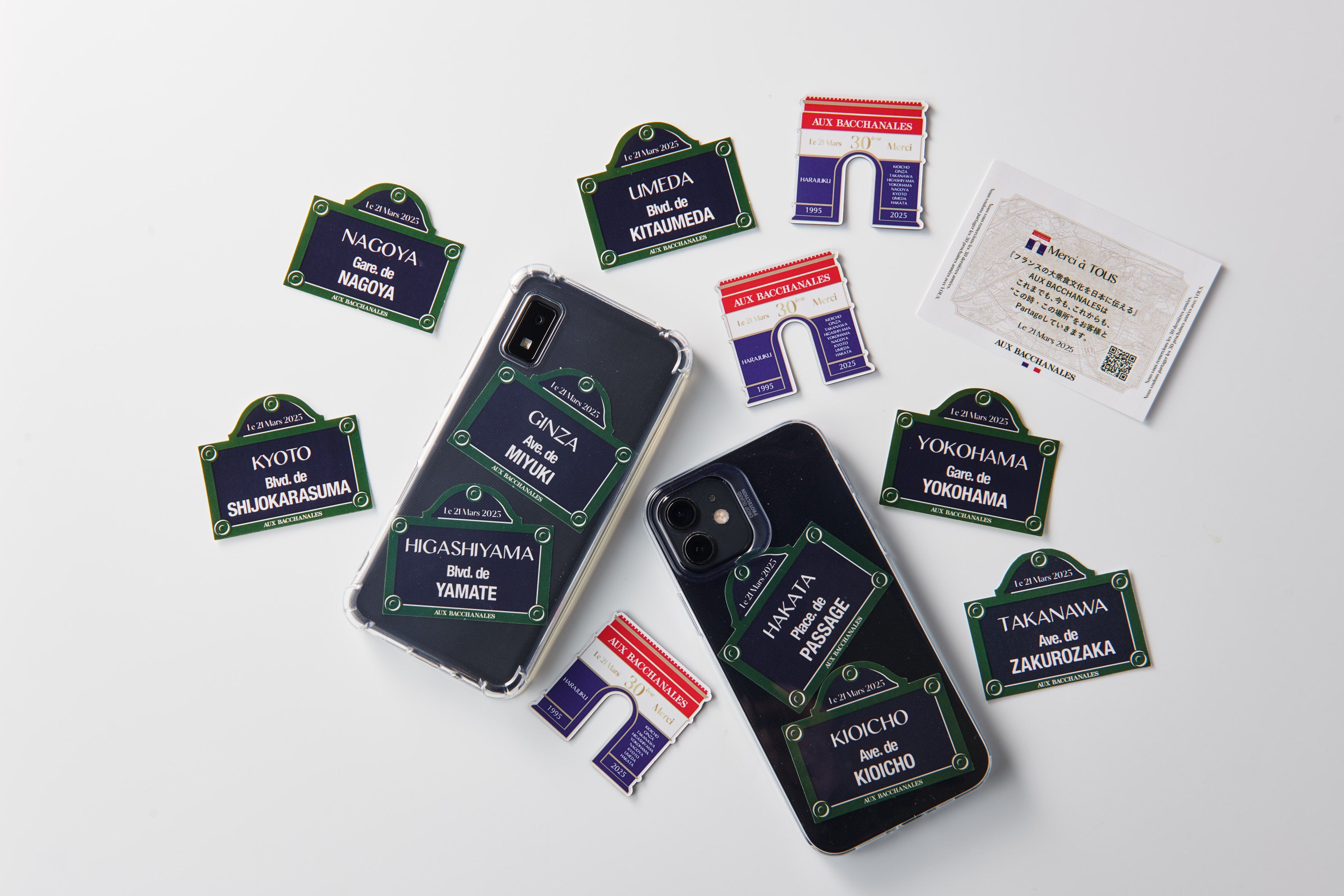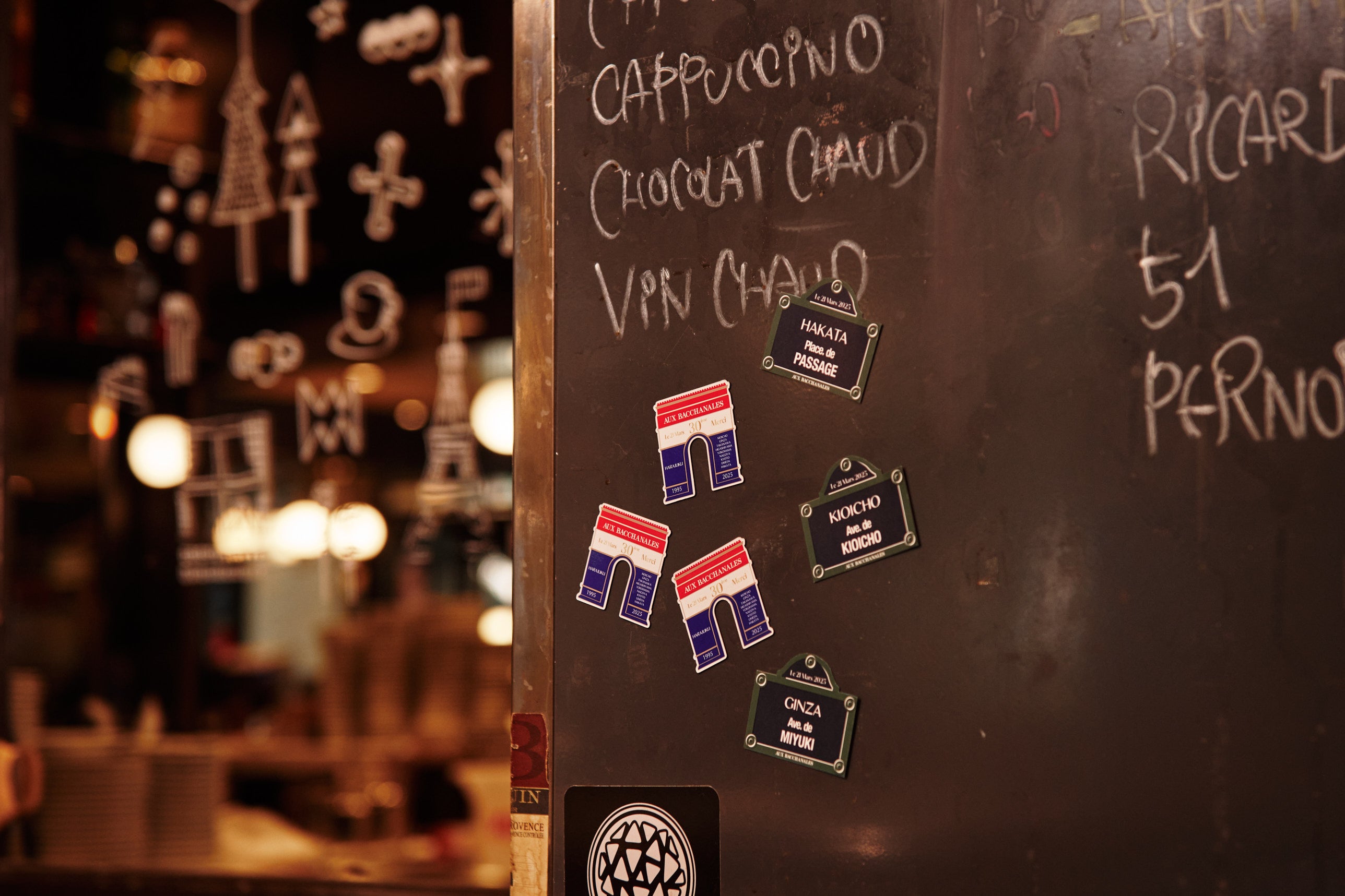 3月21日より、各対象店舗をご利用いただいたお客様に数量限定で30周年記念ステッカーをプレゼント。フランスの道路標識をモチーフにした、各店の店名と、店舗が面する通りの名前が書かれた遊び心のあふれるデザインです。数量限定のため、在庫がなくなり次第配布終了となります。各店を回りながら何種類集められるか楽しんでみませんか。