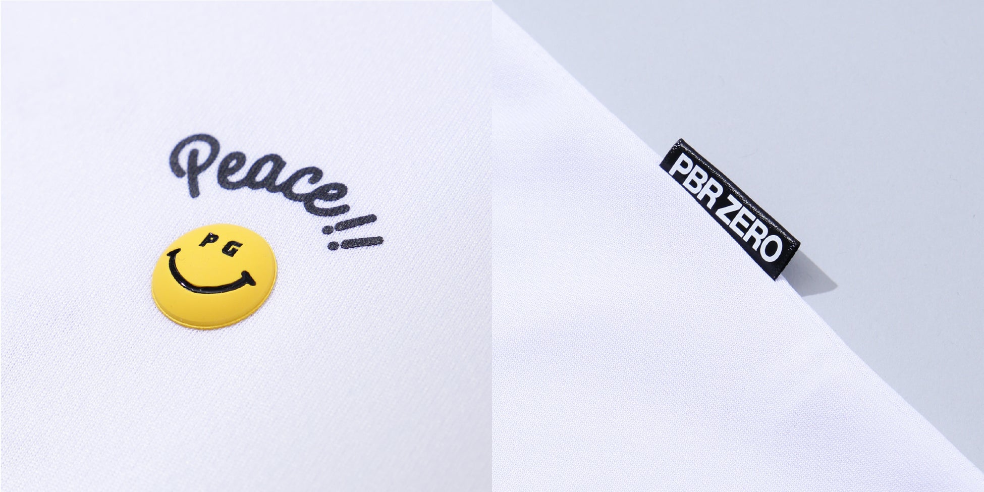 Tシャツの身頃には厚さ4ozの地球の未来を考えた環境配慮型素材「PBR(Plastic Bottle Recycling) ZERO」を使用しています。胸にはキュートなPGスマイルマークのシリコンワッペン、その上にはプリントで表現した“Peace!!”のメッセージがポイント。また、背面にはインパクト大のブランドロゴがプリントされ、このチャリティTシャツだからこそ実現したスペシャルな1着です。