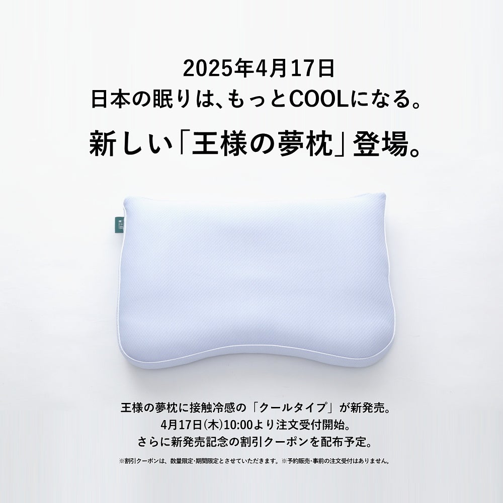 日本の眠りは、もっとCOOLになる。新しい「王様の夢枕」登場。王様の夢枕に接触冷感の「クールタイプ」が新発売。2025年4月17日(木)10:00より注文受付開始。