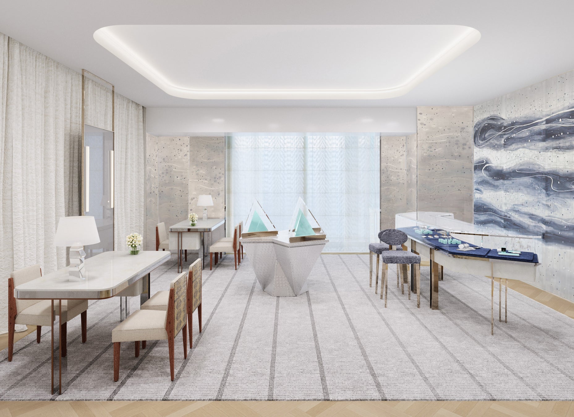 店内にはアートワークの数々が展示され、「ダイヤモンド キング」であるティファニーを象徴する最新のデザインコンセプトであるダイヤモンド ヴィトリンは、訪れるお客様をティファニーのモダンで洗練された世界に誘います。