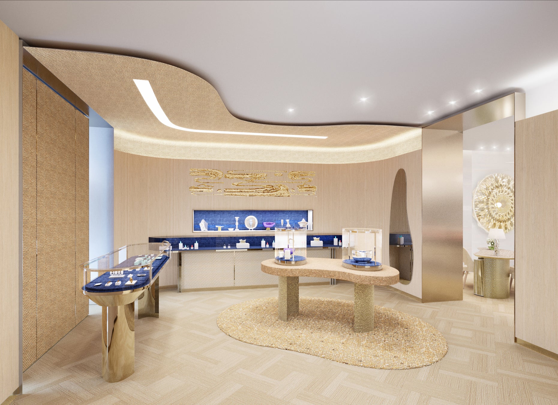 さらに、1階にはティファニーを代表する伝説的デザイナーのひとり、エルサ・ペレッティに捧げられた空間が誕生します。1974年にティファニーのデザイナーに就任したペレッティは、その有機的かつ官能的なデザインで世界中を魅了しました。自然界にインスピレーションを求めたペレッティならではのオーガニックな空間には、代表作「ビーン デザイン」のフォルムから着想を得たコルク素材の什器が、独創的な世界観を演出しています。