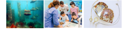 東京大学とアコヤガイとの関わりを紹介するコーナーやアコヤガイの生体紹介・真珠ができるまでを解説しています。生体展示とともに「真珠の取り出し体験」もお楽しみいただけます。