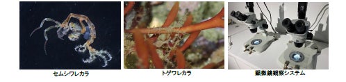 ワレカラは身近な海にすむ小型の甲殻類です。普段じっくり眺める機会はありませんが、細長い体で、腹部がなく、一部の肢(あし)が退化している奇妙な見た目をしています。東京大学三崎臨海実験所では、これまでの研究でこの体がどのように成長していくのかを明らかにしてきました。「ワレカララボ」では、この特殊な進化をとげたワレカラを顕微鏡で観察することができます。