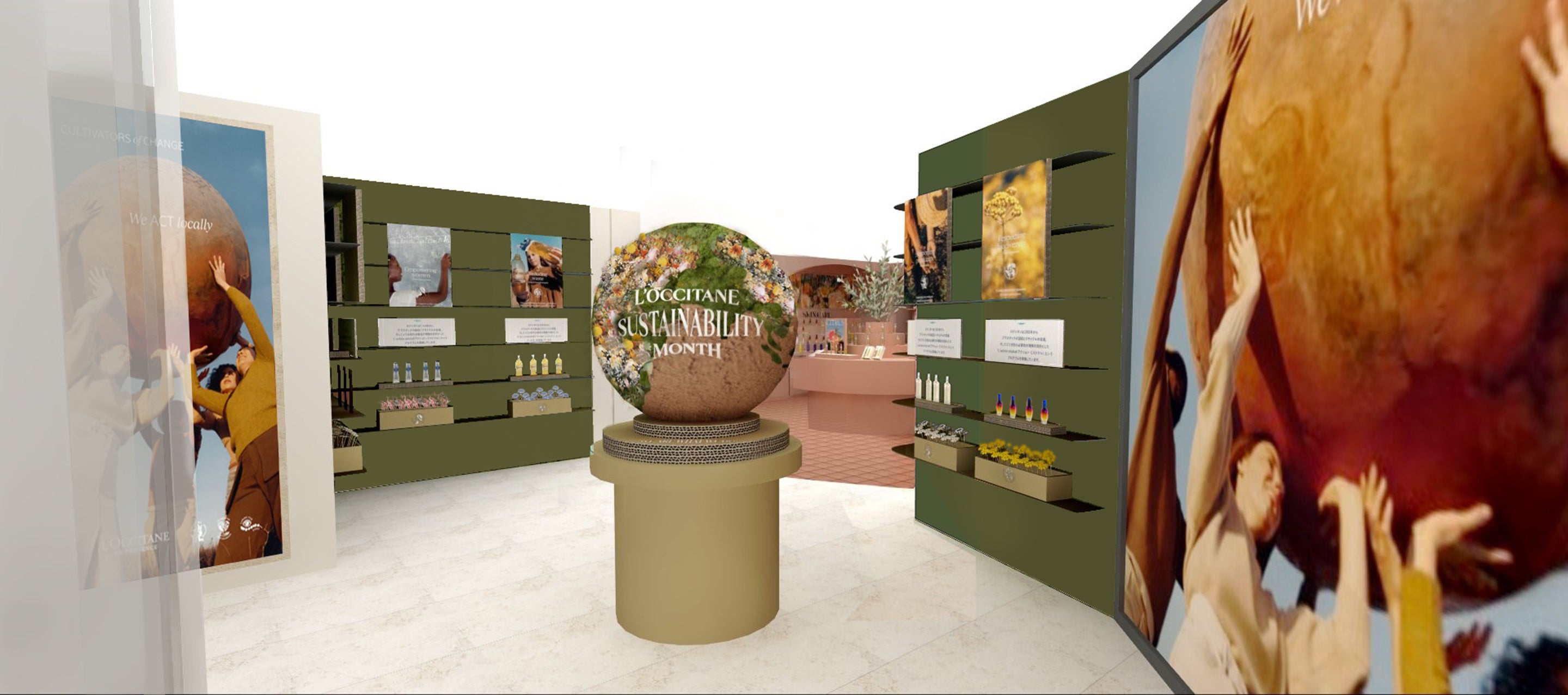 渋谷スクランブル交差点に位置するロクシタンフラッグシップショップを「L’Occitane SHIBUYA TOKYO」として 2024 年4月 27 日(土)にリニューアルオープン。自然を享受し、そしてまた自然に還元する南仏プロヴァンスならではのラグジュアリーな空間を表現した、新コンセプトストアです。この店舗では、2024年6月5日(水)~2024年6月30日(日)までの「サステナ月間」の期間中、入り口近くのポップアップスペースにて、地球を守り、人々を尊重するロクシタンの活動の紹介や「We Act投票」ができるコーナーを設置しております。
