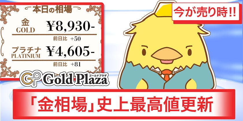 金相場上昇に伴い、金買取相場も上昇しております。史上最高価格である8,930円/gに達したことで金買取店であるゴールドプラザへの問い合わせ来店が増加しております。