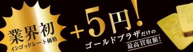 ゴールドプラザでは金相場史上最高価格更新を記念し、国内インゴット100gバーを「当日相場+5円」でお買取りいたします。インゴットバーの当日相場超え買取は業界でも異例のキャンペーンとなっております。日頃のお客様へのご愛顧に応える形でのキャンペーンとなっておりますが、混雑が予想されるためキャンペーン適用にルールを設けさせていただいております。下記、キャンペーン内容をご確認の上、ご利用のほど宜しくお願いいたします。