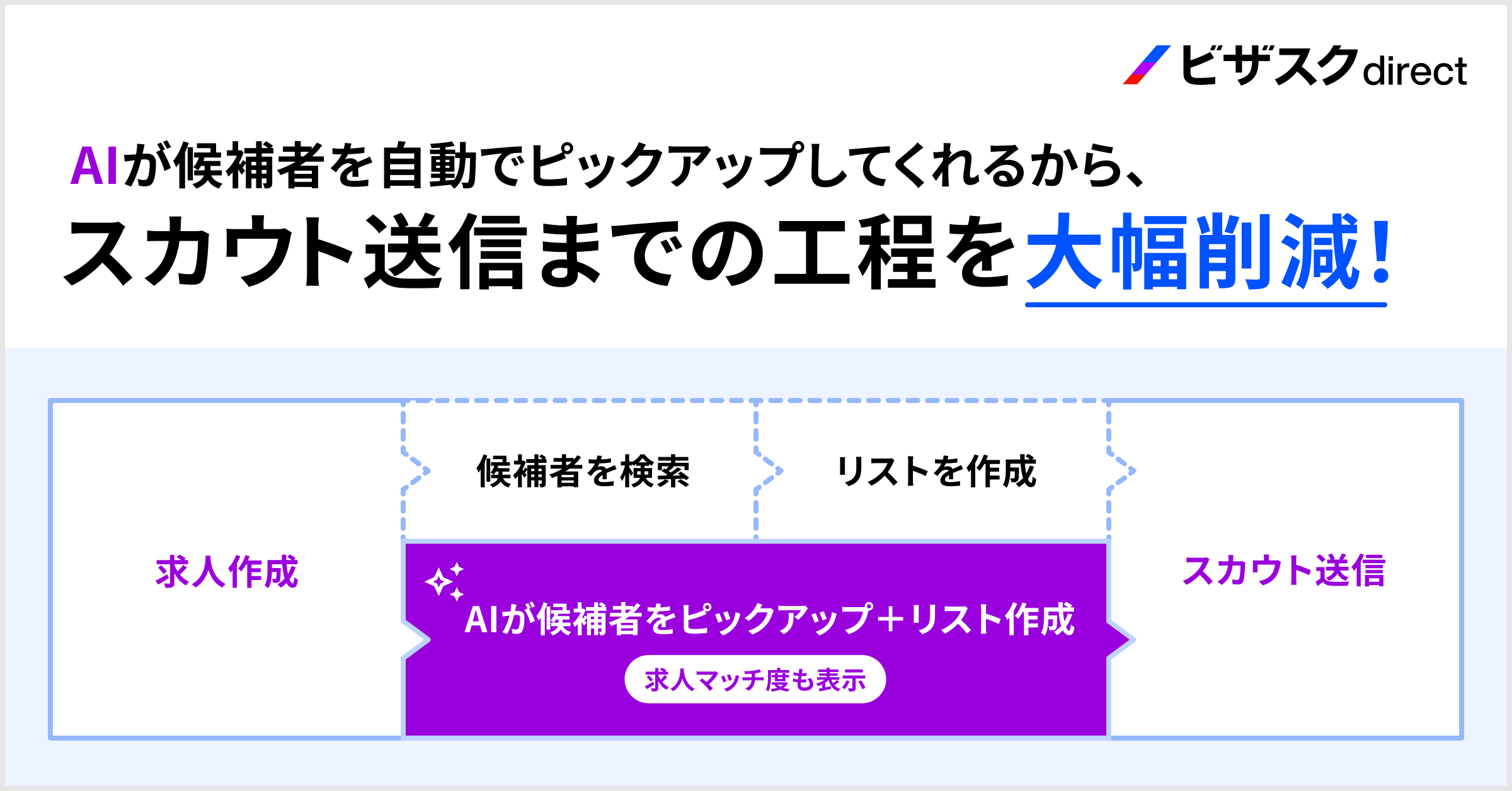 「ビザスクdirect」に正社員採用向けAI候補者レコメンド機能を追加!求人公開と同時にマッチ度の高い候補者を提案し、検索工数ゼロで即スカウト送付を実現
