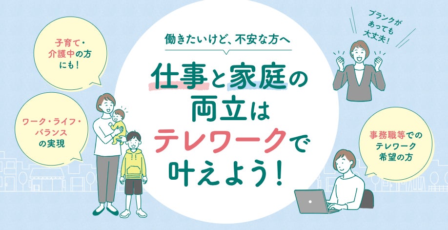 テレワーク等の柔軟な働き方を推進している企業として、仕事と家庭の両立やブランク等の課題を抱えている方々の就業をサポートいたします。入場無料のイベントです。ぜひ、お気軽にご来場ください。