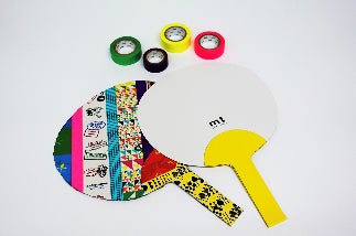 ①白いうちわに好きなマスキングテープを貼ってうちわを制作いただきます。