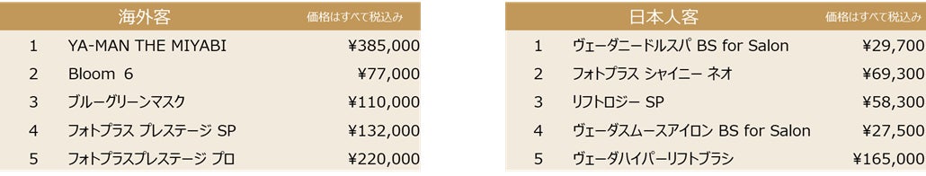 オープンから1年、海外からのお客さまと日本のお客さまの売れ筋商品を比較してみると、海外からのお客さまには2024年2月に発売した日本限定の『YA-MAN THE MIYABI』がダントツで1位でした。