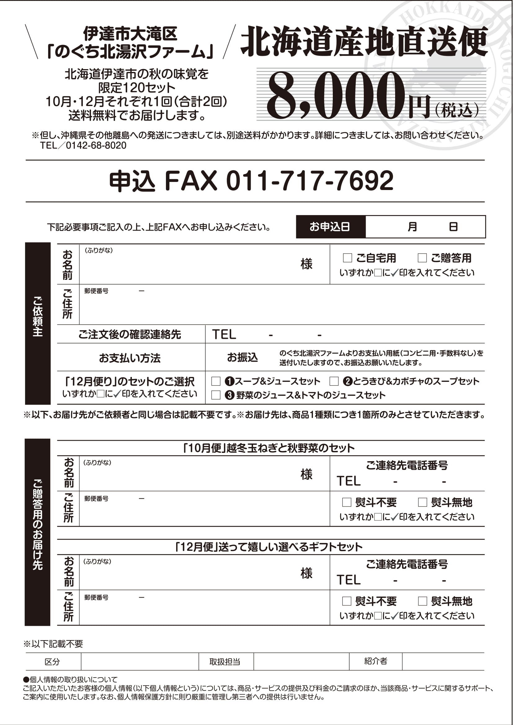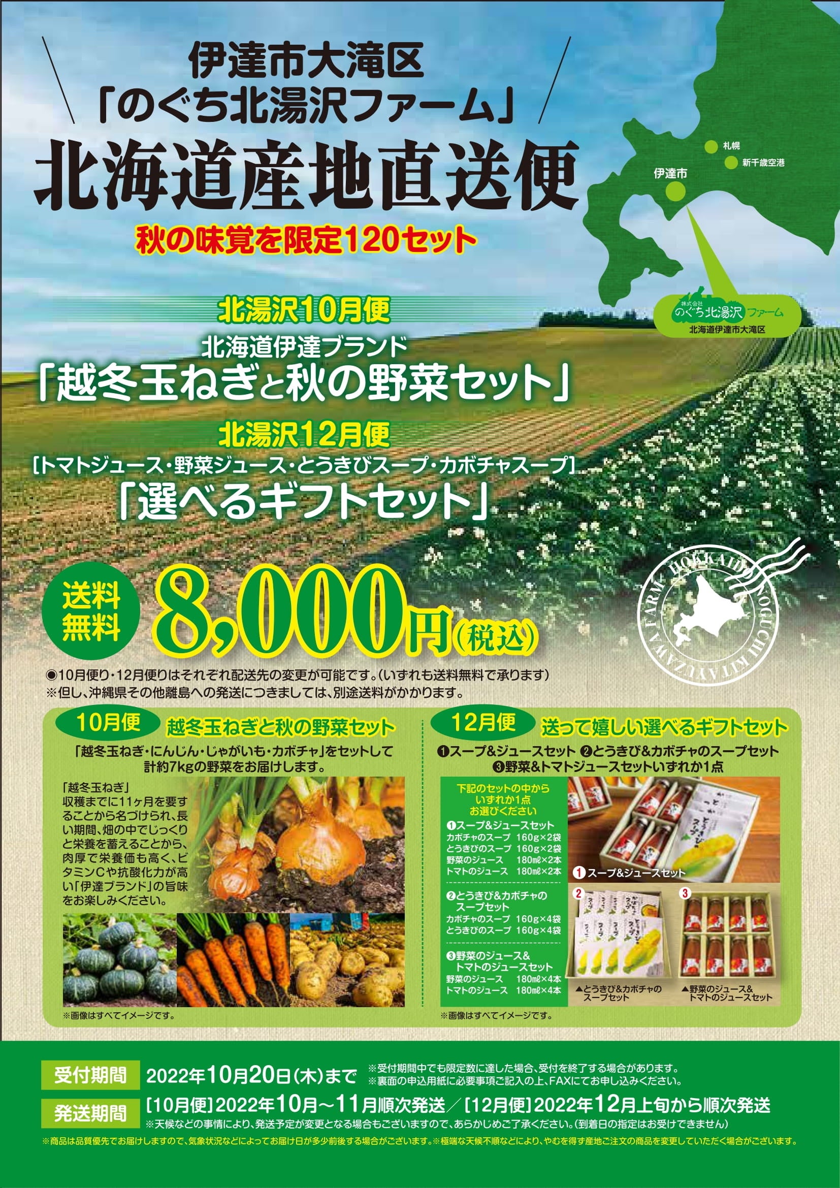 「北海道の秋の野菜セット」と「選べるギフトセット」をお届け致します。