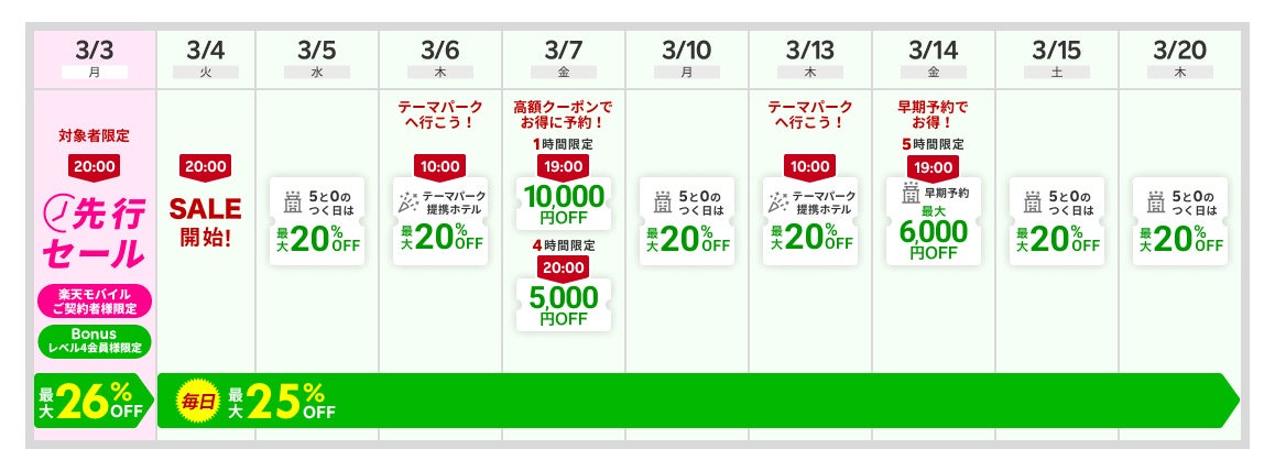 「楽天トラベル」、「楽天トラベル スーパーSALE」を3月4日(火)より開催