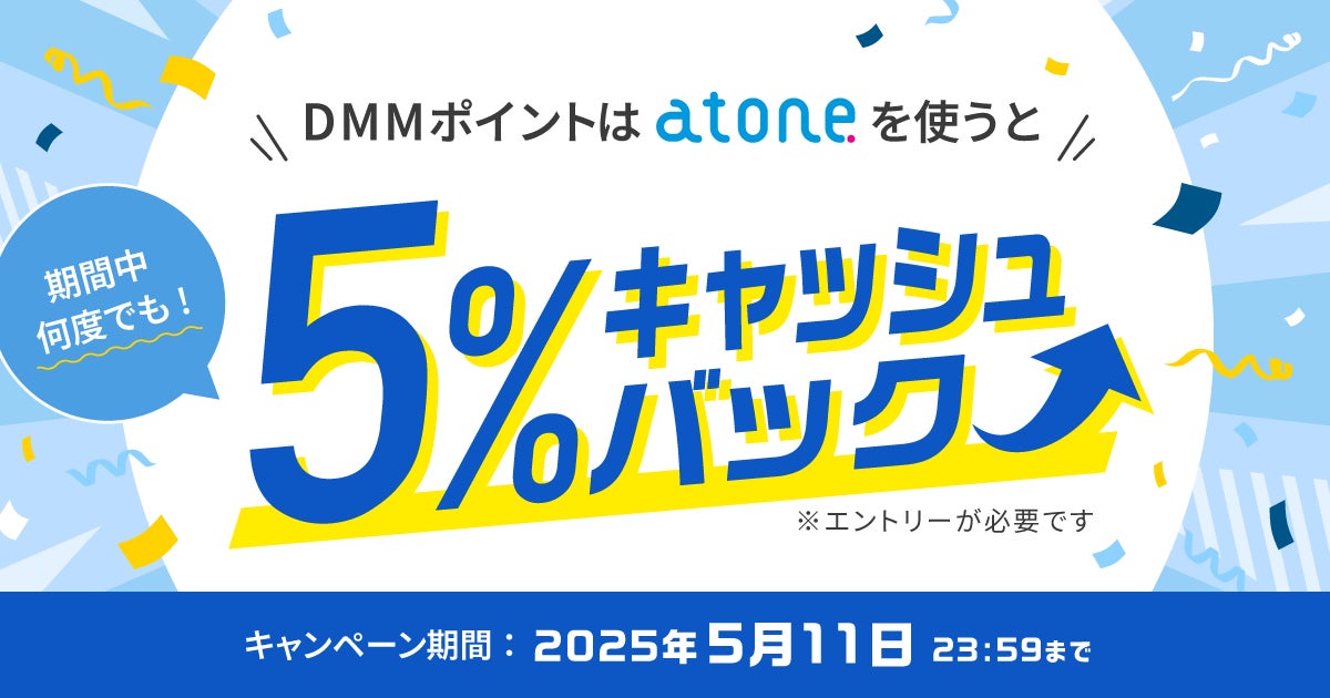 株式会社ネットプロテクションズ(所在地:東京都千代田区、代表取締役社長:柴田 紳、以下当社)は、合同会社DMM.com(所在地:東京都港区、会長 兼 CEO亀山敬司、以下DMM)が運営する総合サイト「DMM.com」に、当社の後払い決済サービス「atone(アトネ)」を提供開始しました。これにより「DMM.com」提供サービス利用に必要な、DMMポイントのチャージに「atone」を利用できるようになります。導入を記念したキャンペーンも実施します。