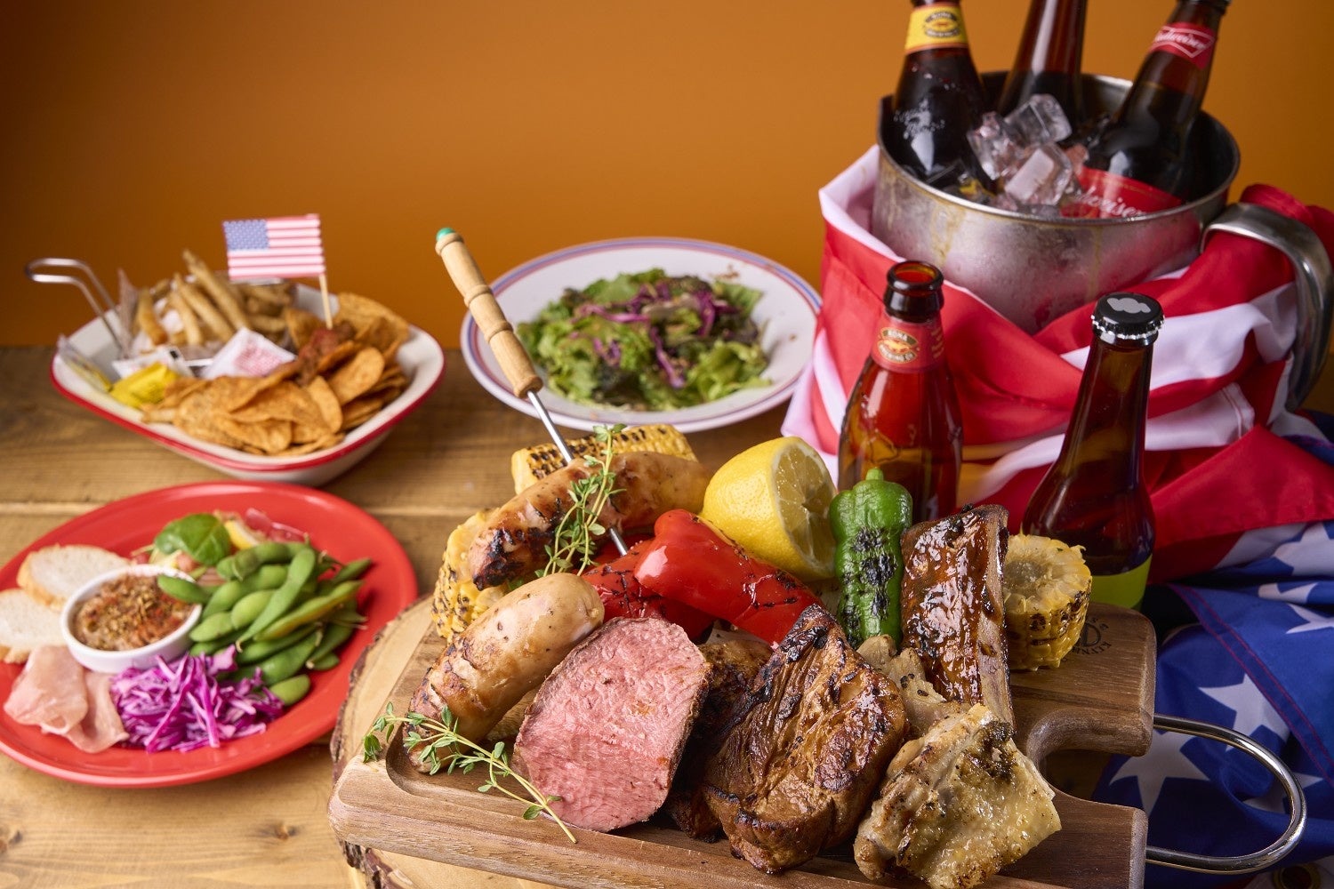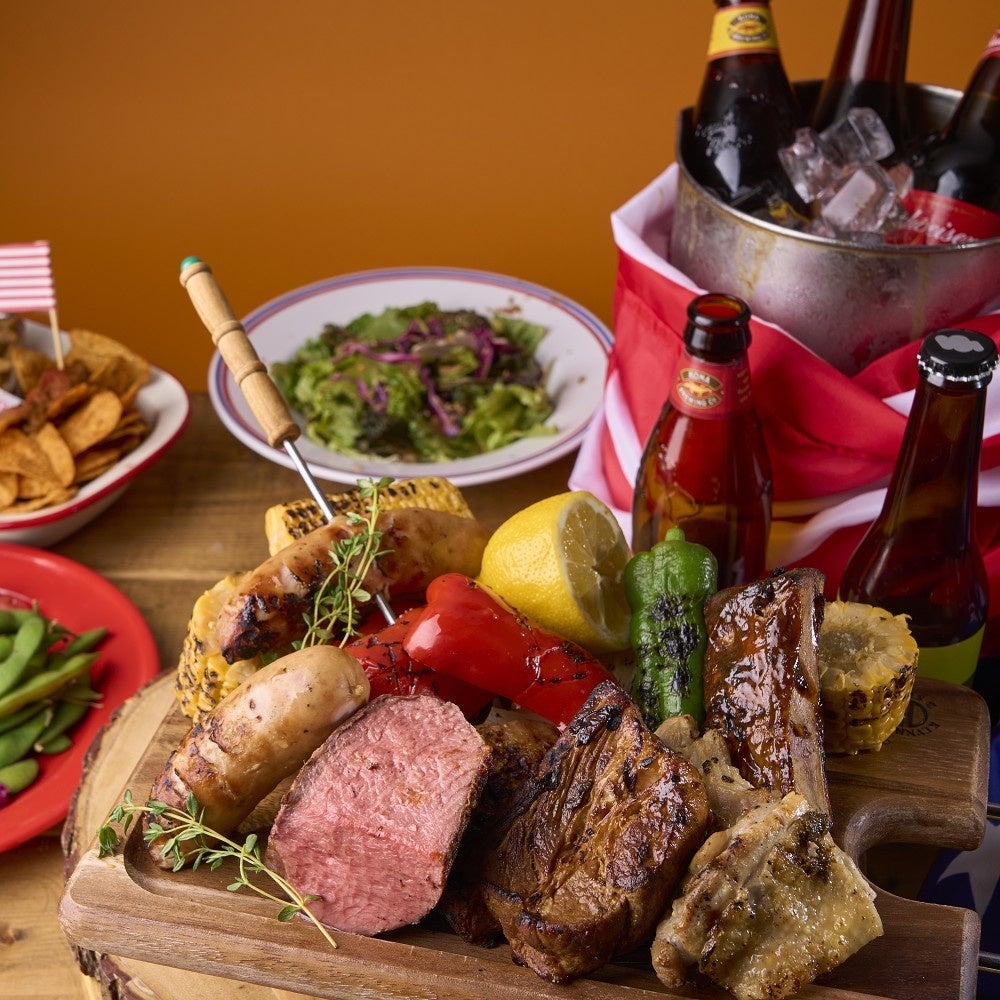 このプランは、牛ランプ・豚スペアリブ・ジャークチキンなどのお肉と夏野菜のグリルを豪快に盛ったBBQプレートをメインに、ハワイのポキをイメージした「枝豆ポキ&スモークサーモンのレモンマリネ」や「ナチョス」、「KOREANチョレギサラダ」など、ビールにぴったり合う世界各国のおつまみを集めました。乾杯には選べるクラフトビールをご用意し、飲み放題もついたお得なプランとなっております。