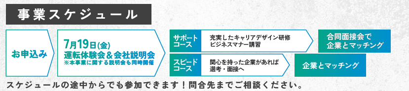 今回の説明会に参加できなくても、スケジュールの途中から参加OK!ぜひ一度ご相談ください。