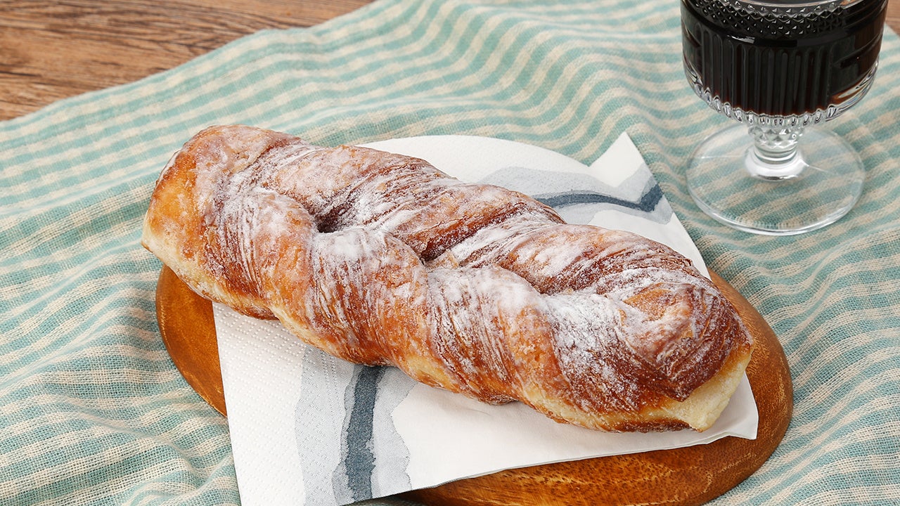ツイストしたデニッシュ生地を揚げ、ドーナツにしました。