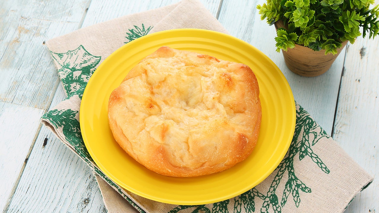 カイザーは「皇帝」を意味する言葉で、パンの上部が王冠のようにみえることからその名前がついたといわれているオーストリア生まれのパンをアレンジし、オニオンマヨネーズとチーズをトッピングしました。ソフトな食感のフランスパンです。