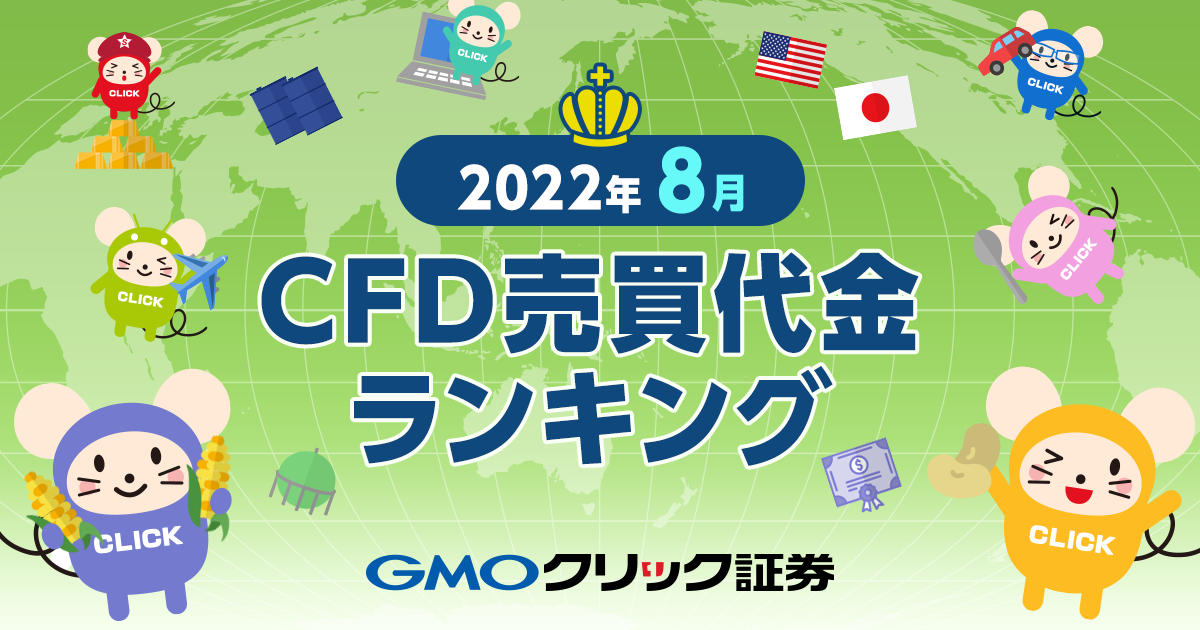 GMOインターネットグループのGMOフィナンシャルホールディングス株式会社の連結会社で、金融商品取引業を営むGMOクリック証券株式会社(本社:東京都渋谷区、代表取締役社長:鬼頭 弘泰、以下:当社)は、2022年8月の当社CFD売買代金ランキングを発表いたします。
