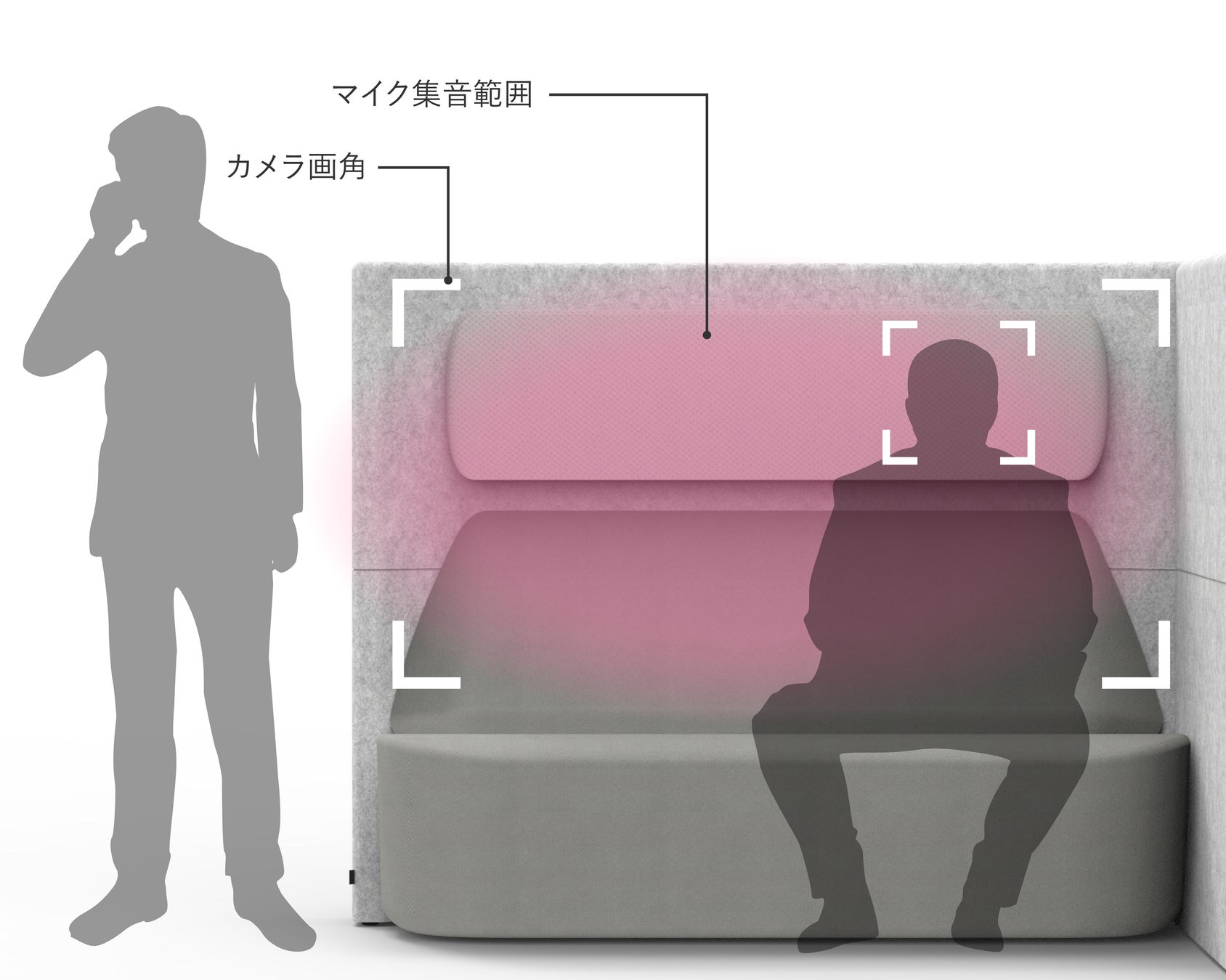 そして今回、よりコンパクトで少人数利用に適した「sound sofa(サウンドソファ)片面タイプ」を新たにラインアップに追加。指向性スピーカーによるWeb会議音の最適なコントロール機能はそのままに、少人数での利用に適したサイズでオフィスのレイアウトや利用人数に合わせた組み合わせを可能にし、オープンスペースでのWeb会議環境をより快適かつ生産的なものへと向上させます。