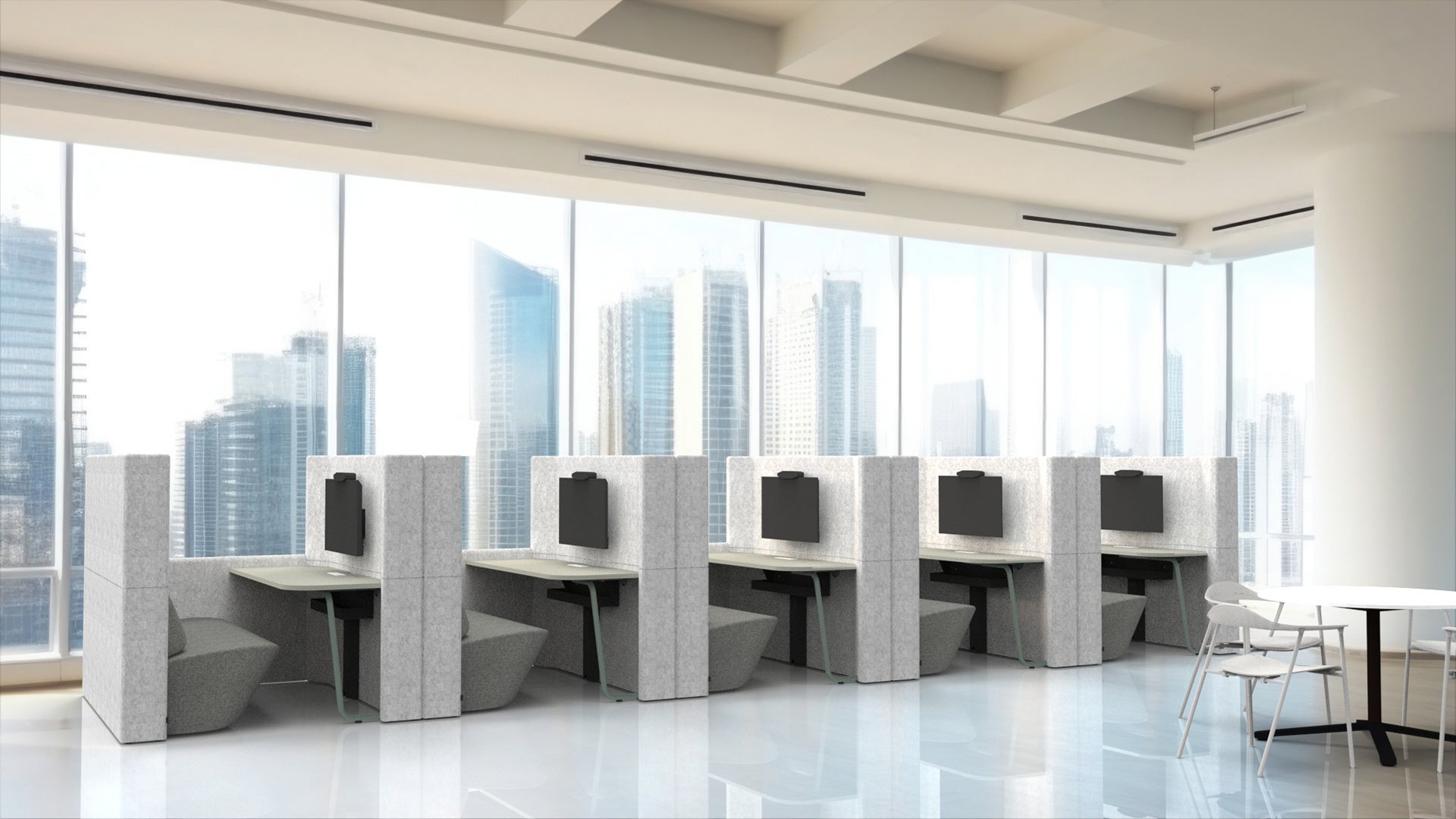 オープンスペースでも音を気にせずWeb会議ができるボックス型ソファ「sound sofa(サウンドソファ)」にコンパクトな片面タイプが登場