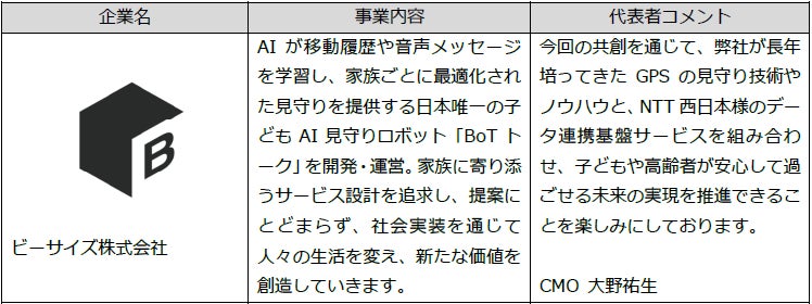NTTBSは、ビーサイズ株式会社と、「データ連携基盤サービス」を活用したサービス連携の実現に向けて、ビジネスモデル等の詳細検討を行い、共創での事業化をめざします。
