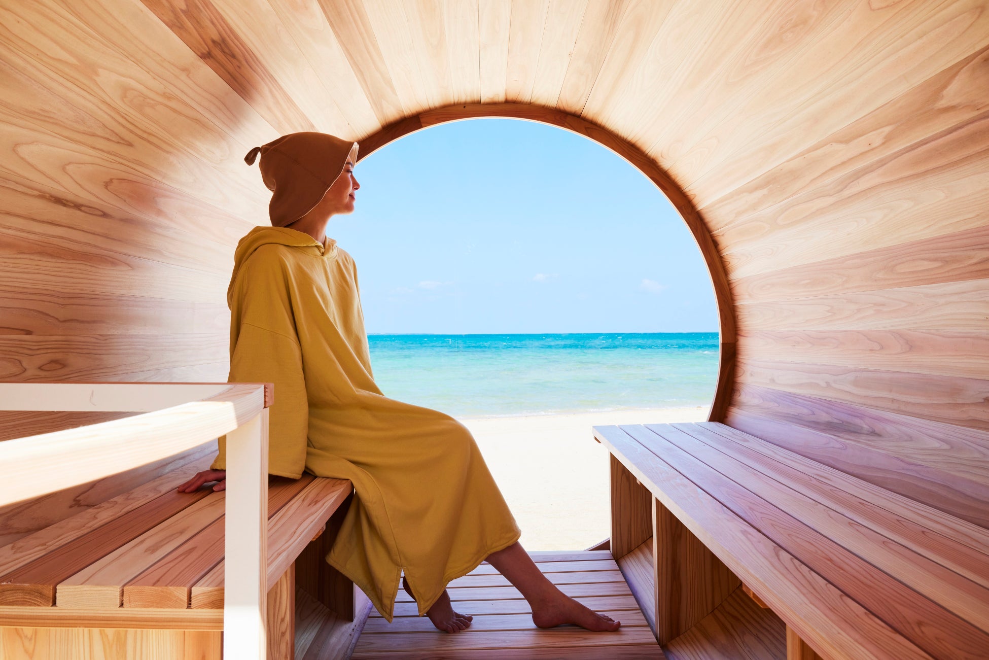 リゾナーレ小浜島に隣接するビーチに佇むバレルサウナでは、2024年6月1日よりサウナアクティビティの通年販売を開始します。国内最大の珊瑚礁「石西礁湖(せきせいしょうこ)」を眺めながら、海風でととのうサウナ体験が叶います。小浜島の自然がつくりだす絶景を眺める、ここにしかないサウナアクティビティです。