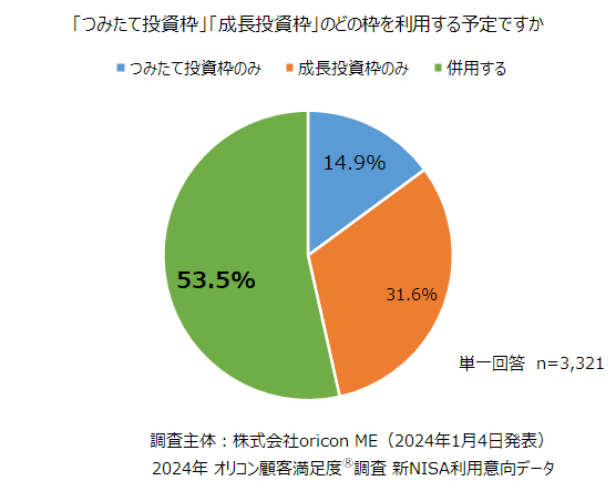 新NISAの利用意向:66.2%が「利用予定あり」 過半数はつみたて投資枠と成長投資枠を「併用する予定」と回答、制度改正が好意的に受け止められたか(オリコン顧客満足度®調査 新NISA利用意向データ)