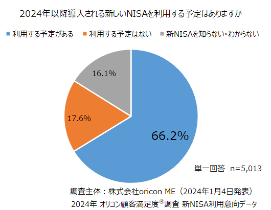 新NISA利用意向:66.2%が「利用する予定がある」、「知らない・わからない」も16.1%