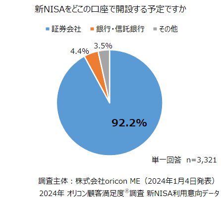 新NISA利用予定者の92.2%が「証券会社」で口座開設すると回答、「銀行」はわずか