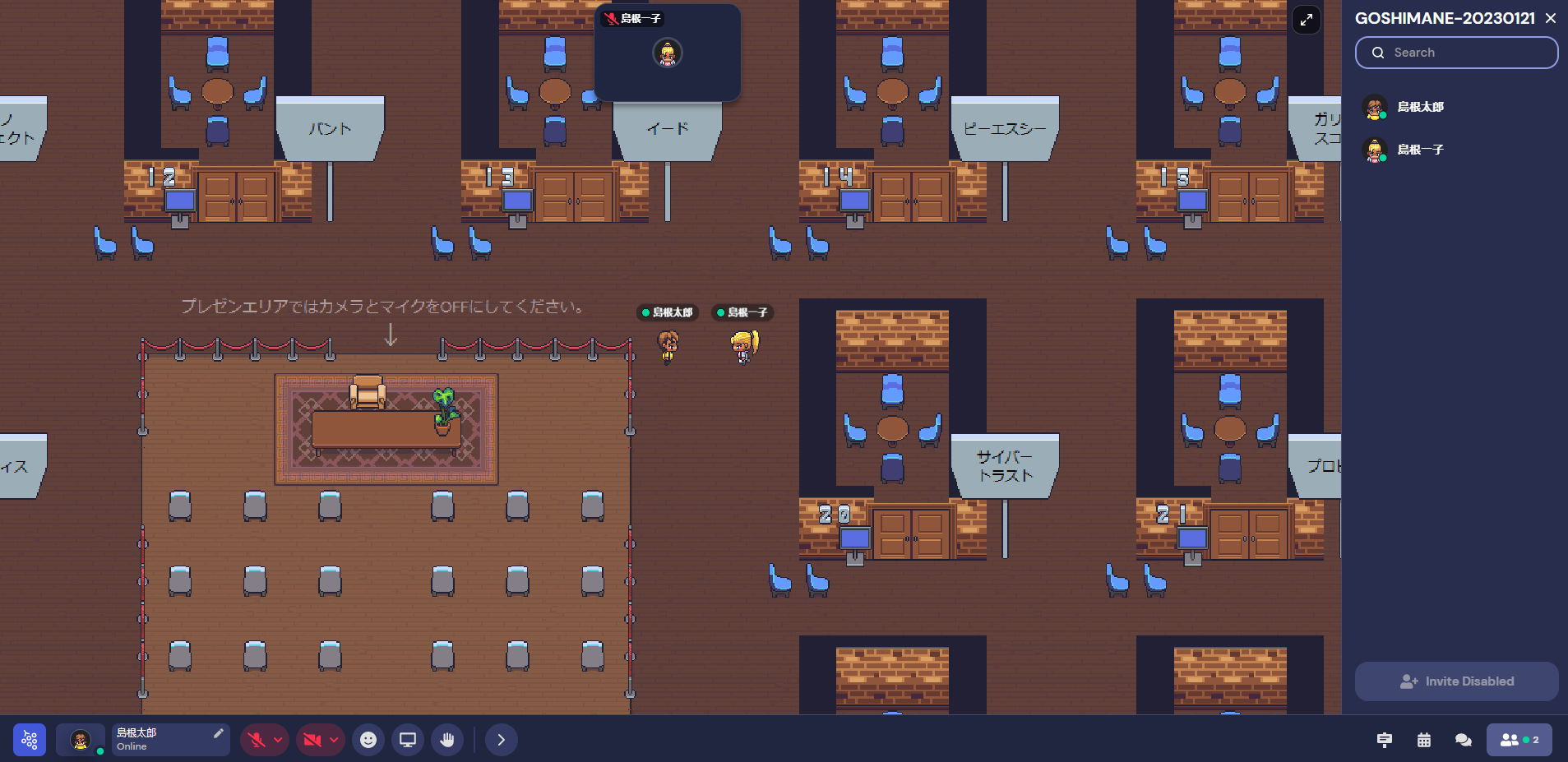 アバターを自由に移動して、ビデオ通話やチャットができます。