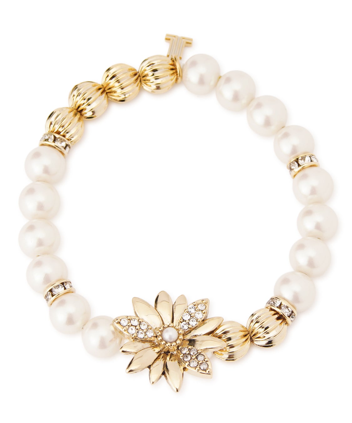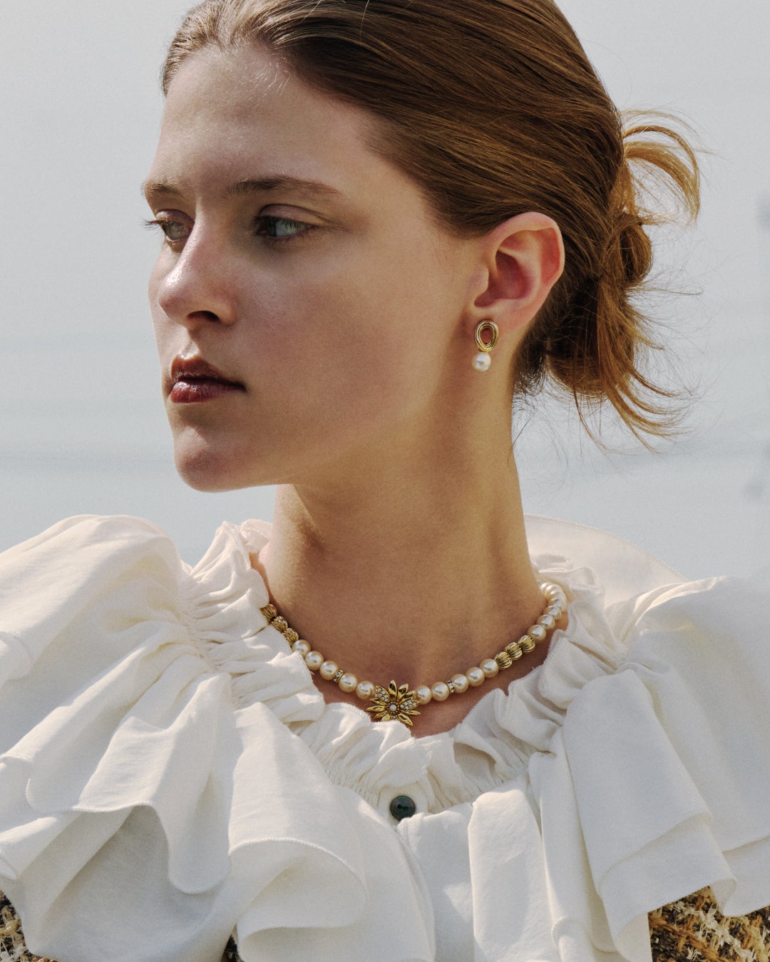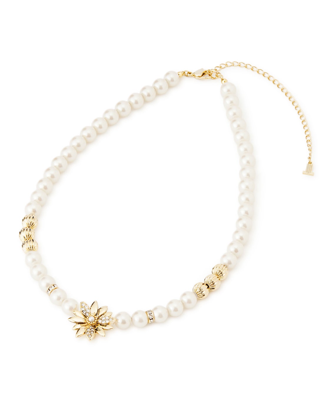 ショートネックレスは、トップにアクセントとしてマーガレットモチーフのゴールドパーツをあしらい華やかな印象に。