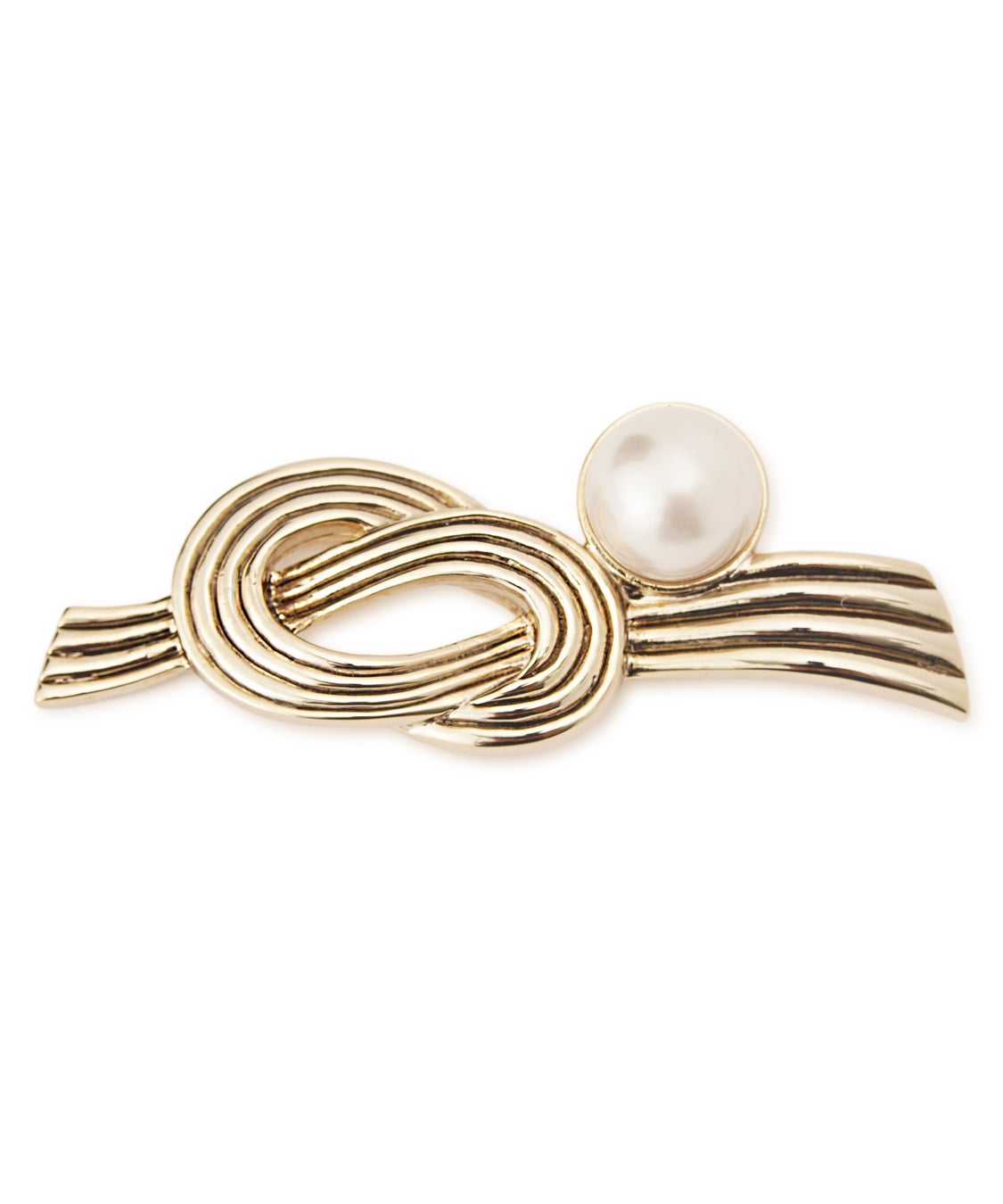 帯を結んだようなシルエットのブローチは、ヴィンテージ感とモダンさを兼ね備えたデザイン。「縁を結ぶ」「心を結ぶ」という意味を持つ結びのモチーフは、お祝いの席にもふさわしいアイテムです。