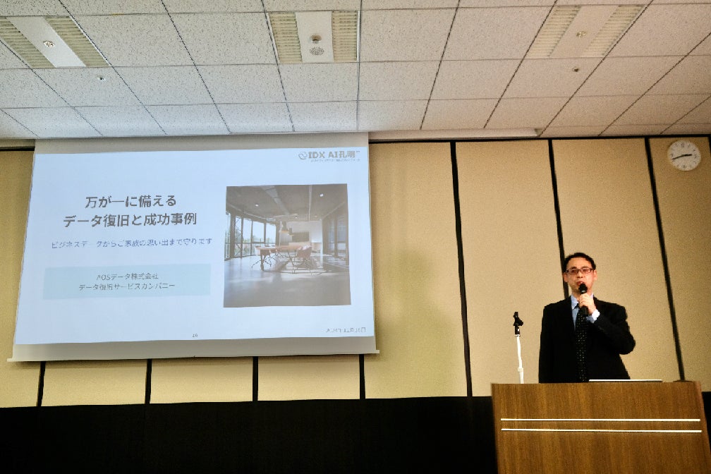 中小企業の約9割が適切なバックアップを取っておらず、国内企業の48%がデータトラブルを経験していることから、データ損失が深刻な問題であり、これにより、年間約5兆円の損失が発生しているので、データ保護の重要性を強調しました。また、個人ユーザーにおいても、写真や動画などの思い出のデータや、結婚式の写真などの復旧依頼も多いと述べました。年間で多くの復旧依頼が寄せられる一方、データ復旧サービスを利用した割合はわずか7%にとどまり、約半数がデータを諦めている現状を説明しました。