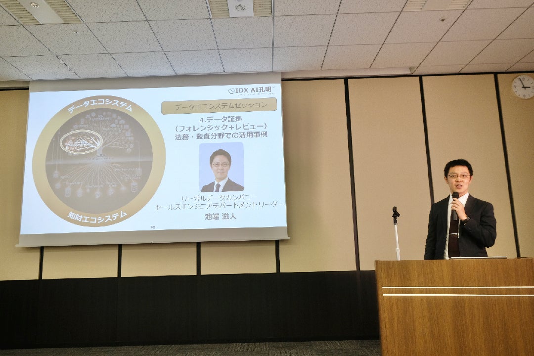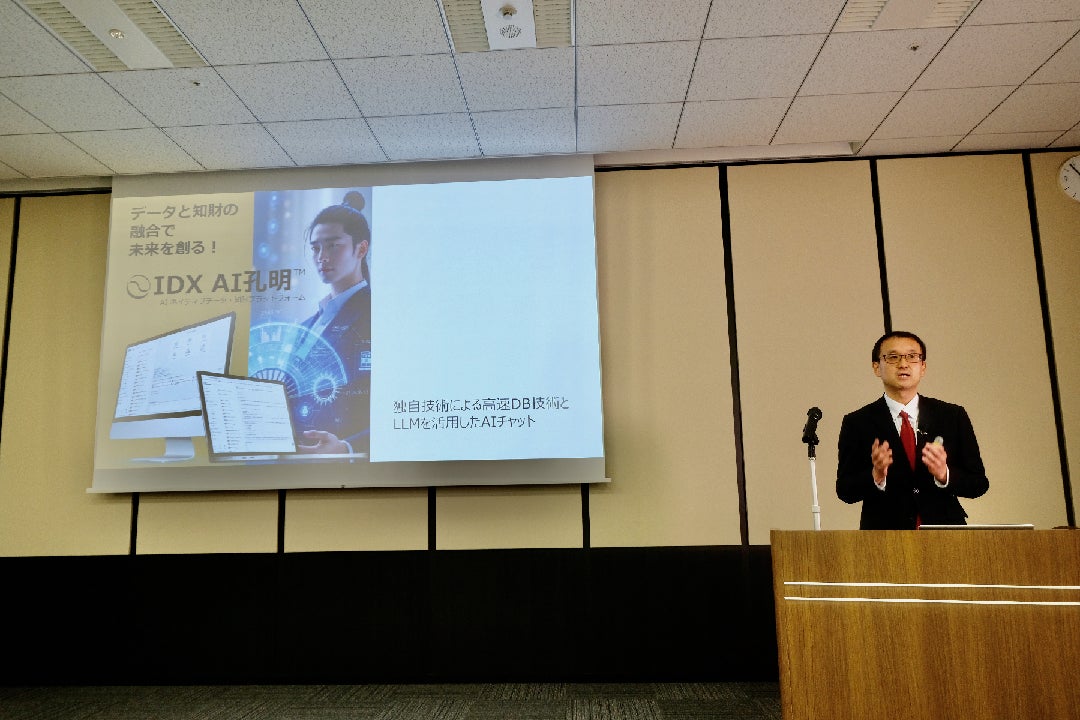 データインフラでは、IDXのクラウドデータ管理や復旧サービスを提供するとともに、経済産業大臣賞を受けたフォレンジック調査や証拠開示サービスを通じて、法務分野でも高い評価を得ています。一方、知財インフラでは、グループ会社の特許検索・出願支援システム『Tokkyo.Ai』や特許売買を可能にするIPマーケットプレイスの構築により、知財管理と収益化を支援。これらを統合し、生成AI『AI孔明』によるデータと知財の融合プラットフォームを展開しています。