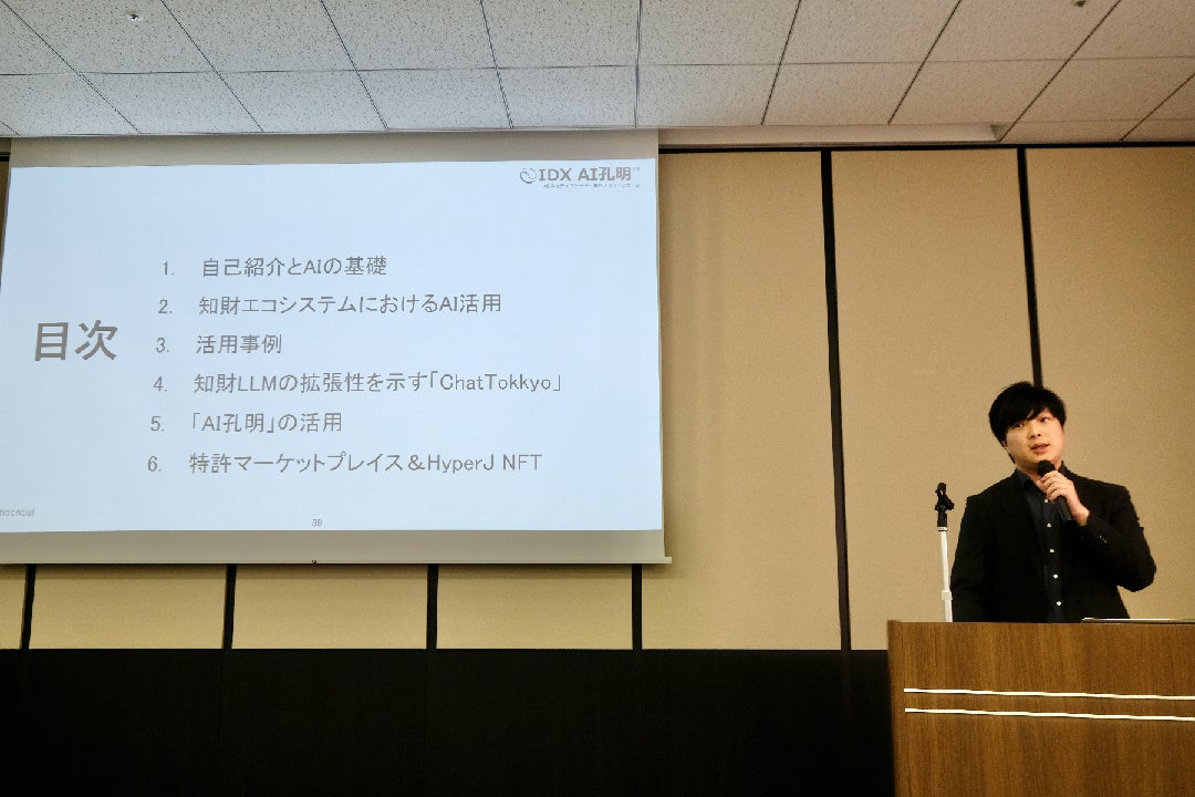 最後に、特許やアイデアの売買・ライセンス供与を可能にする「特許マーケットプレイス」や「HyperJ NFT」を紹介し、ブロックチェーン技術を活用した特許の唯一性証明の取り組みを紹介。AIと知財の融合により、知財の価値最大化と企業の競争力向上に貢献すると締めくくりました。